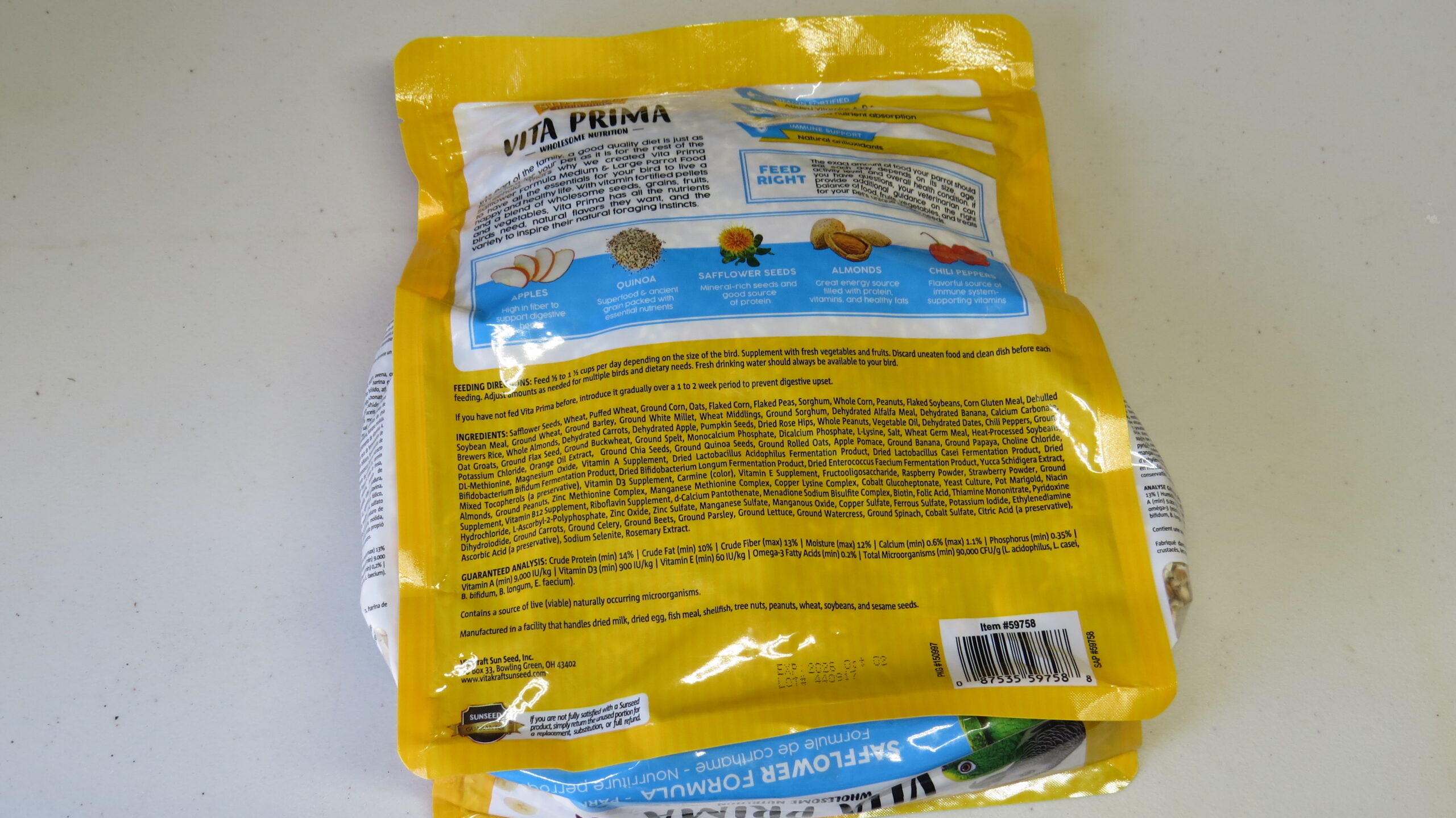 Donated Sunseed Vita Prima Safflower Formula Med-Lg Parrot Food 4lb BagDeAnna Hicks · March 19, 2026 · No Comments $0.00 2 in stock Donated Sunseed Vita Prima Safflower Formula Med-Lg Parrot Food 4lb Bag quantity Add to cart Categories: Large Bird Food, Medium Bird Food, Weekaboo Parrot Pantry Description Description Sunseed Vita Prima Safflower Formula 4lb bag generously donated by Petco. BEST BY DATE: 10-02-2026 Related products Donated Avi Cakes – Classic Small Bird size $0.00 Add to cart Donated Avi Cakes – Fruit Delight Small Bird size $0.00 Add to cart Donated LaFeber’s Nutri-Berries Sunny Orchard 3lb Bag $0.00 Add to cart Kaytee Food from the Wild Natural Snack $0.00 Add to cart
